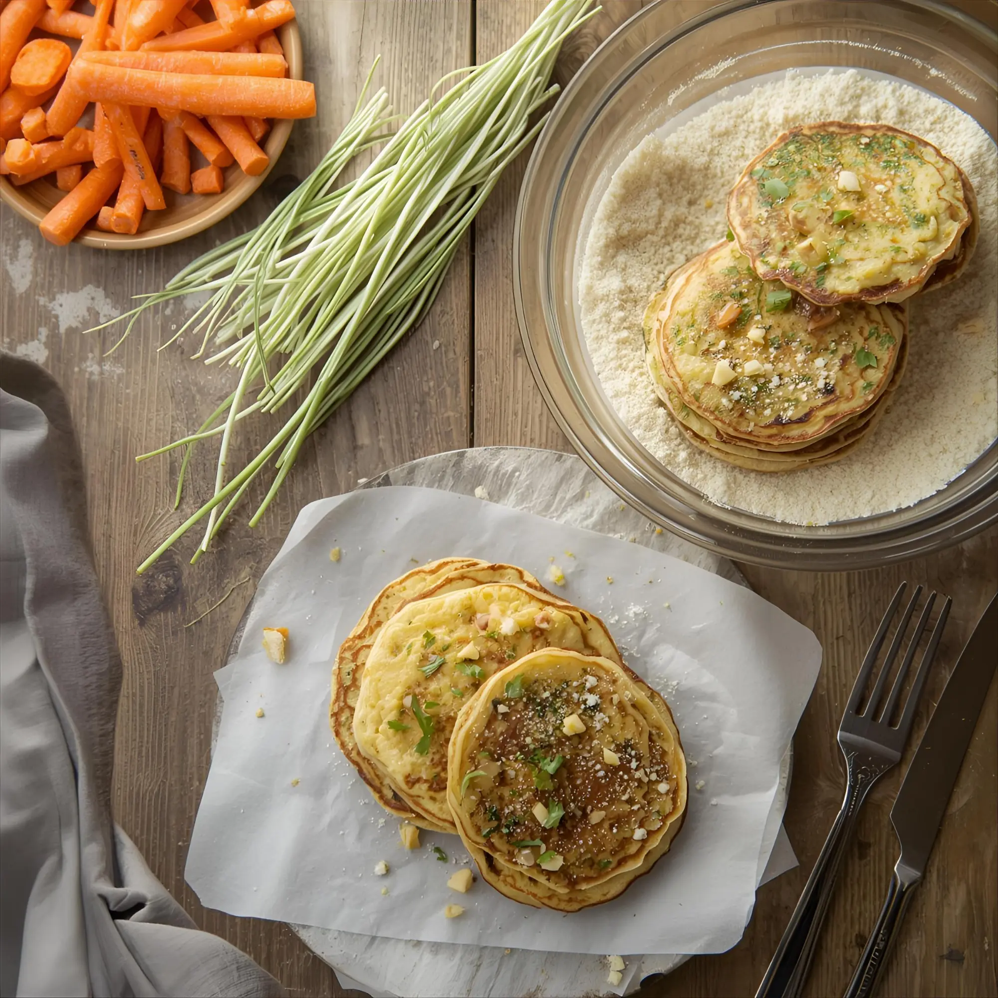 Knusprige Gemüsepuffer mit Karotten und Zucchini – perfekt als Vorspeise oder Snack.