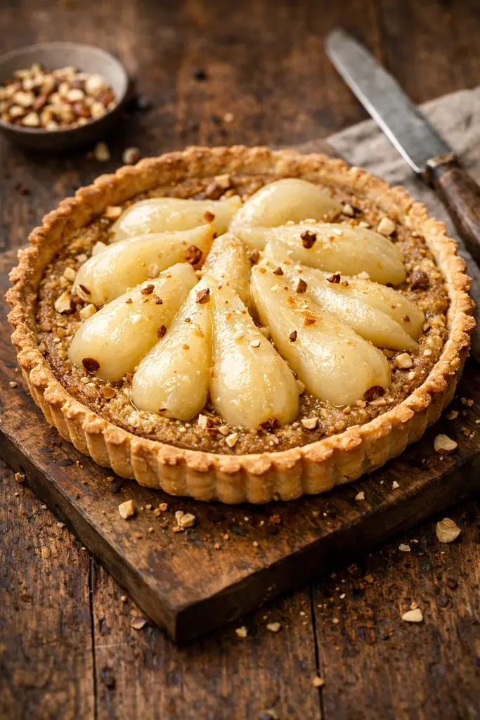 Pochierte Birnen-Tarte mit brauner Butter