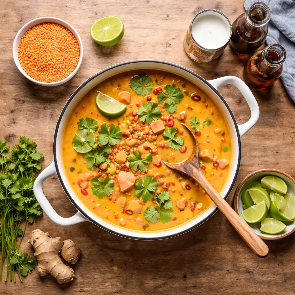 Thai Red Lentil Soup with Coconut Milk and Sweet Potato