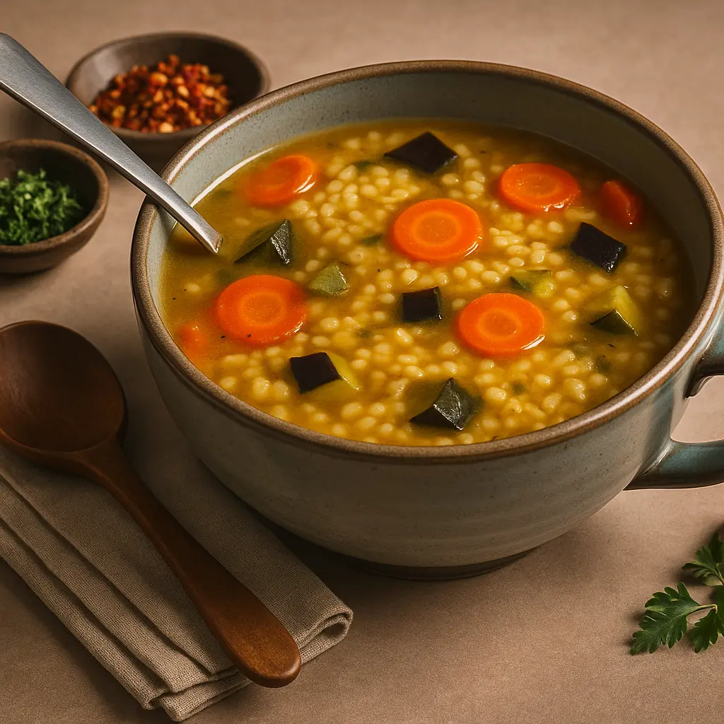 A creamy vegetable soup flavored with Ras El Hanout