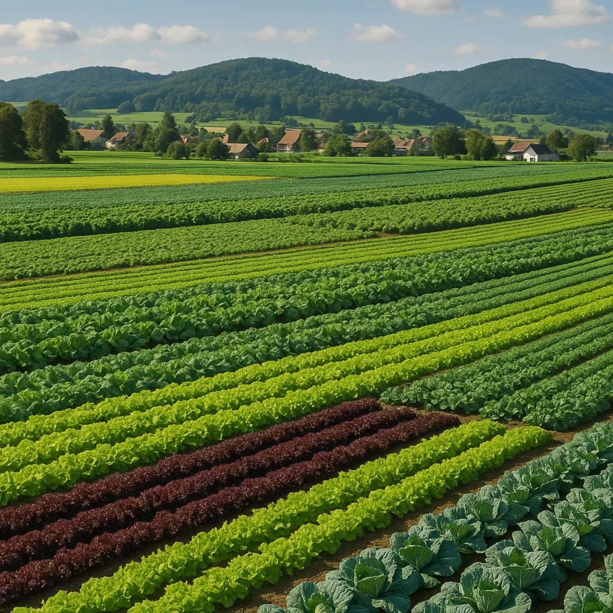 Ce qui nous plaît encore plus, c’est la trajectoire de la région : aujourd’hui, 23,5 % des surfaces de légumes en Suisse sont cultivées en bio (FiBL & Bio Suisse, 2023), et dans le Seeland, cette part grimpe rapidement. Rien que dans le canton de Fribourg, environ un tiers des légumes sont déjà produits selon les normes biologiques (Canton de Fribourg, 2022). À Kerzers, Ins ou Morat, on voit se multiplier les projets collectifs, comme Terraviva, qui fédère près de 90 producteurs bio et gère environ 700 hectares(Terraviva, 2023). Parmi eux également, des pionniers comme Christen Bio, acteur reconnu du Seeland, montrent la voie avec des exploitations 100 % bio et innovantes. Bref : le bio ici, ce n’est pas une niche, c’est une lame de fond.