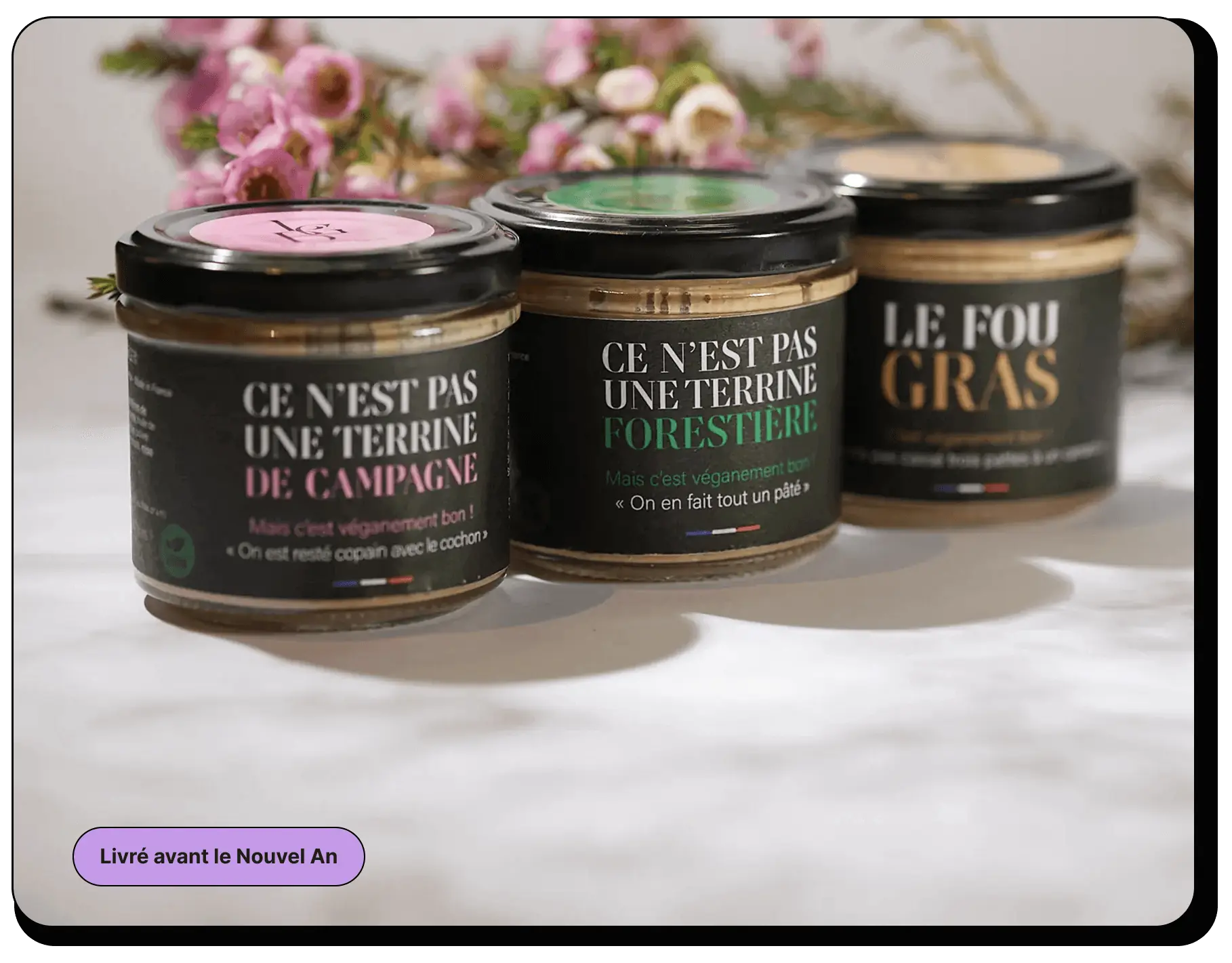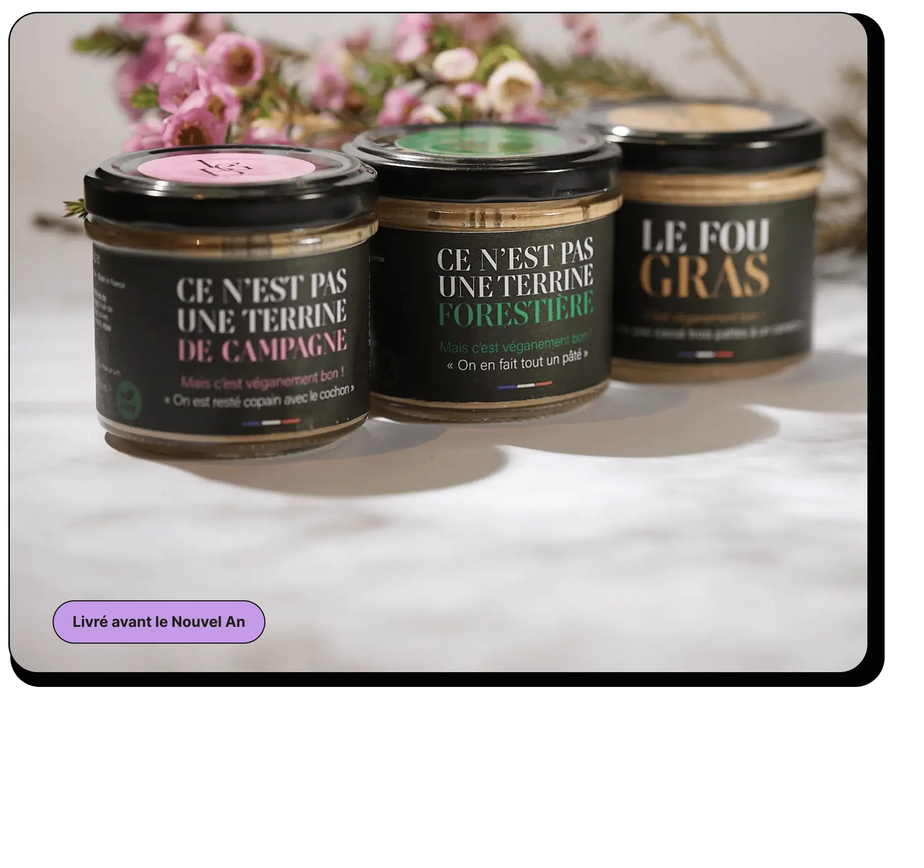 Découvrez le pack dégustation Le Grand Bluff avec trois recettes originales qui réinventent les classiques du terroir en version vegan. Du Fou Gras, en passant par les terrines façon campagne et forestière, ce coffret réunit le meilleur pour se laisser bluffer.