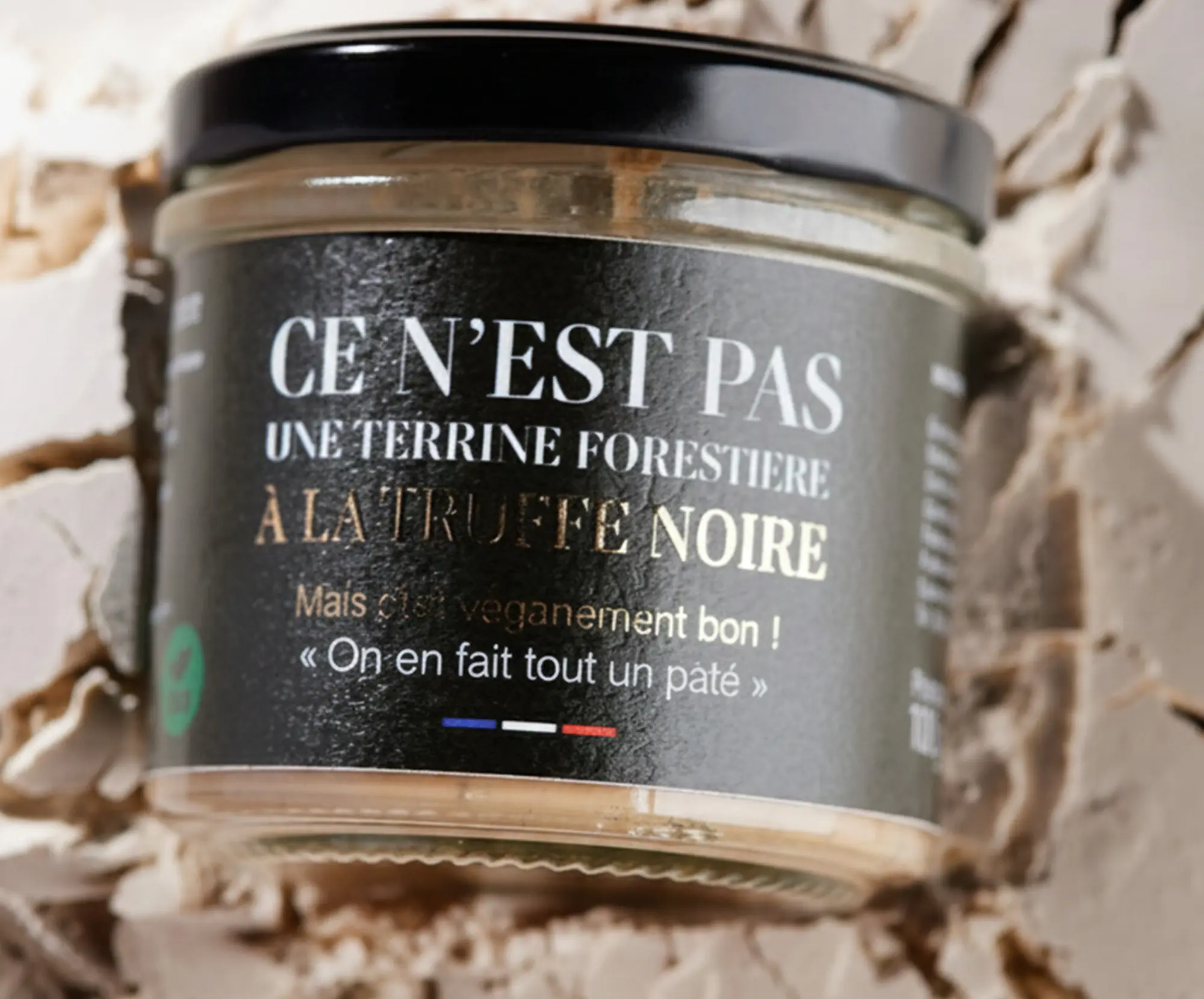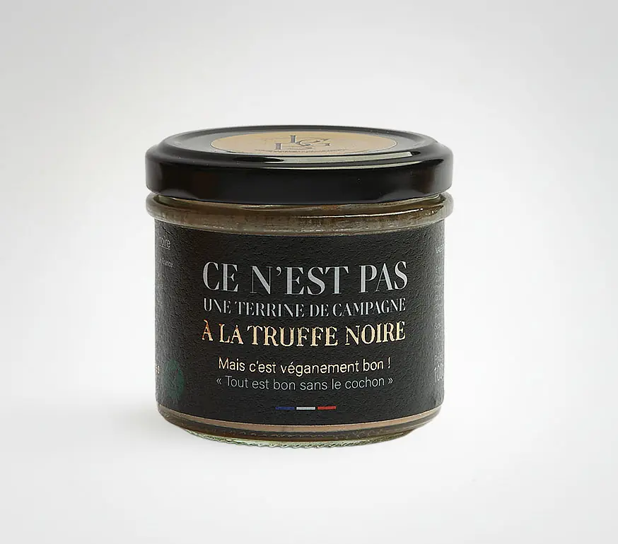 INGRÉDIENTS : eau, huile de coco, protéines de soja, champignons, levure inactive, huile de colza, brisure de truffe (tuber aestivum), tamari, farine de chia, concentré de tomate, moutarde de Dijon, oignons séchés, sel marin, ail semoule, arôme truffe, agar agar, poivre noir*.