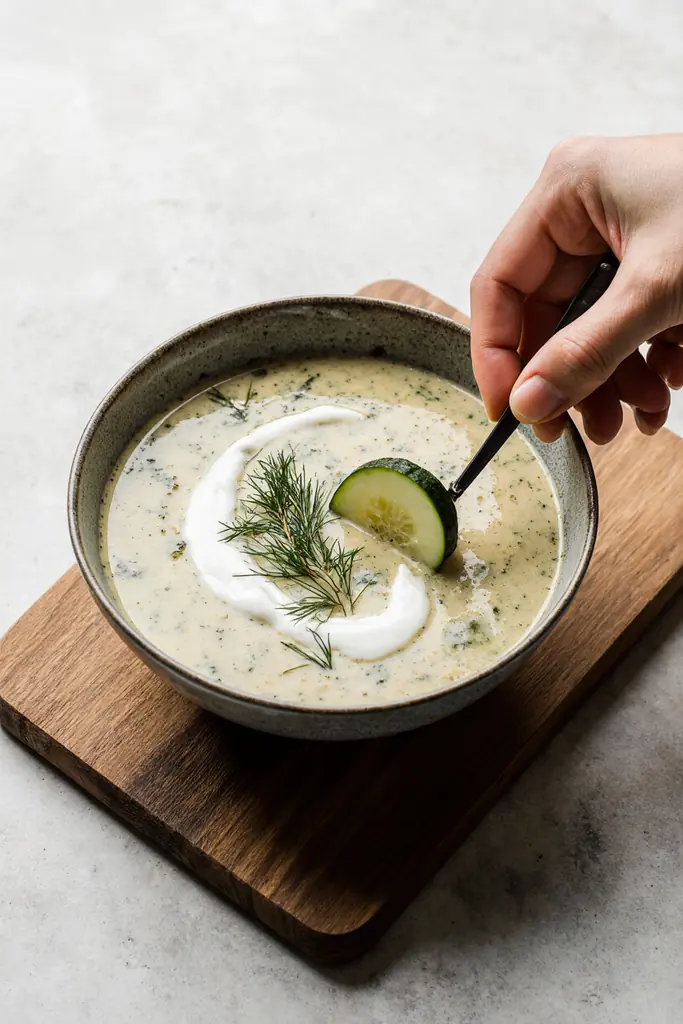 Salade de poulet turque avec sauce cacık au yaourt maison