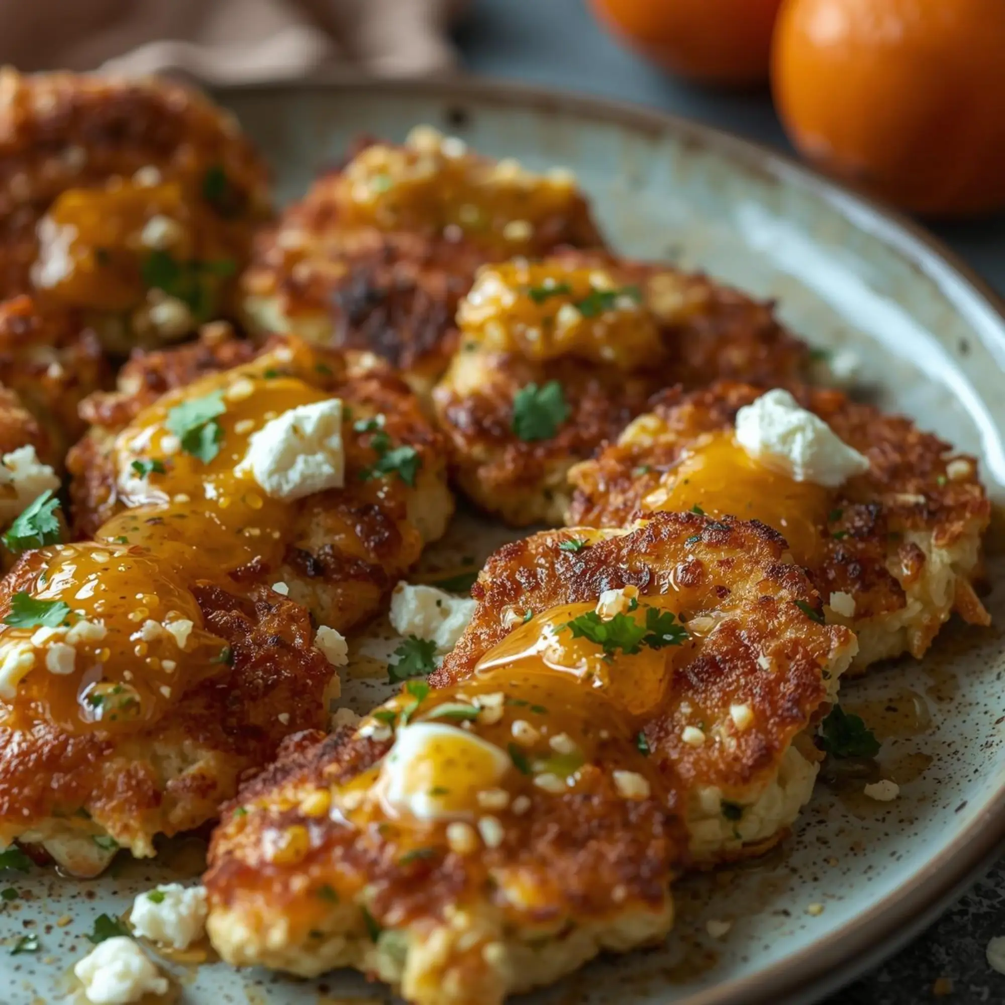 Galettes de fenouil croustillantes, feta & vinaigrette à la mandarine